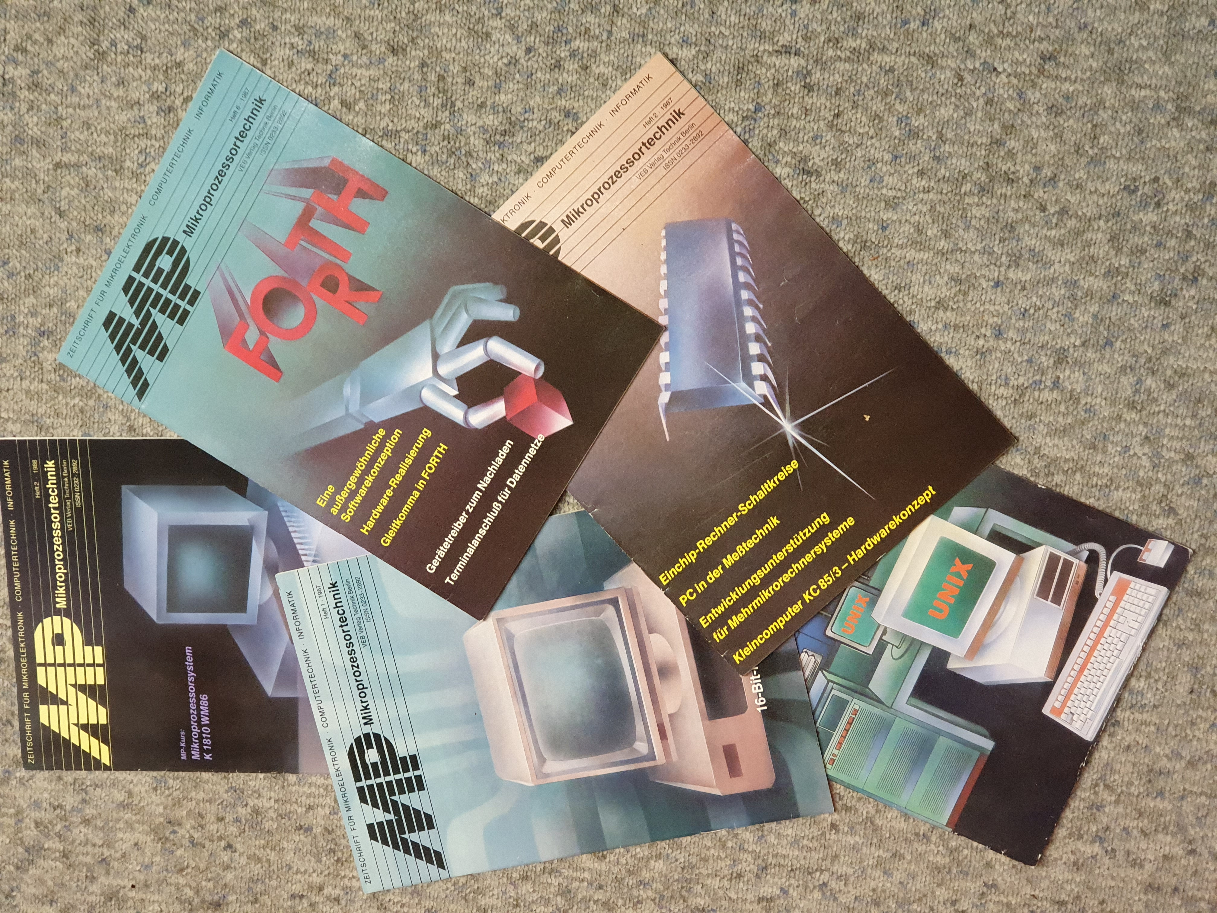 An dem Titelbild MP 12/1988 lässt sich auch der gestalterische Anspruch der MP-Redaktion im Vergleich zu anderen Zeitschriften des Verlages erkennen: Nach einer Fotovorlage von Redakteur Hemke schuf es die Illustratorin Tatjana Stephanowitz in Airbrush-Technik. Diese bei DDR-Zeitschriften noch kaum eingesetzte Technik diente bereits zur Gestaltung des ersten Titels 1/1987 und von vielen weiteren. Ein weiteres Novum bei einer wissenschaftlich-technischen Fachzeitschrift der DDR war es wohl, die Aufmacherthemen nicht sachlich-trocken, sondern mit einer Prise Humor anzukündigen. Üblicherweise griff man bei den anderen Redaktionen im Verlag für die Titelseite kostengünstig auf Pressefotos zurück, um das Titellayout mit gestalteter Schrift dann noch typographisch aufzuwerten. Die MP-Redaktion dagegen diskutierte von Beginn an ausgiebig (und am Frühstückstisch auch schon mal ausufernd) die grafische Umsetzung eines Titelthemas. Danach beauftragte sie hin und wieder - DDR-Bürgern aus dem „Eulenspiegel“ bekannte - Karikaturisten mit der Titelgestaltung. Für MP 6/1988 (Fehlertolerante Systeme) und andere beispielsweise H. J. Eggstein, für MP 12/1989 (Echtzeitverarbeitung) und weitere Frank-Norbert Beyer oder für MP 4/1991 (Integrierte Softwarepakete) Barbara Henniger. Für andere Titelseiten wiederum lieferten die Redakteure gleich die arrangierten Fotos. Entweder als Fotovorlage (siehe oben) oder als fertiges Titelfoto für die Gestaltung. Für das Titelthema „Datenbanken“ in MP 1/1992 legte Redakteur Hemke als Scrabble-Motiv nicht Loriots „Schwanzhund“, sondern kombinierte die Namen von bekannten PC-Datenbanksystemen. CR Weiß zweckentfremdete für sein Titelfoto für MP 6/1990 (Protected Mode) aus dem Küchenschrank die Käseglocke, um Prozessor und Speicher auf einer Leiterplatte zu „schützen“; für das Titelbild MP 1/1991 (Objektorientierte Programmierung) mussten sich die Matroschkas aus der Spielzeugkiste der Kinder arrangieren lassen; und für „Die Maus-Story“ in MP 2/1991 modelten zwischen PC-Mäusen zwei echte aus der Futtertierzucht für Grünen Leguan und Schnappschildkröte. All dies übrigens - heute kaum noch vorstellbar - aufgenommen mit analogen Fotokameras auf Dia-Filmen, die das Ergebnis der Arrangements und Belichtung erst nach der Filmentwicklung, also nach Tagen, preisgaben. Oder bei Negativfilmen anhand von Papier-Kontaktabzügen oder -Vergrößerungen. Die Redaktion wählte in Zusammenarbeit mit der Gestalterin die geeignetsten aus, die nun mit Erstellen des (Papier-) Layouts eingetütet und mit den Manuskripten an die Druckerei geliefert wurden. In der Korrekturphase gab es praktisch immer Änderungen. Die Anordnung von Text, Tabellen, Fotos und Grafiken - das Layout - erfolgte bei der MP noch bis zum Schluss analog „in Handarbeit“. Dafür gab es diverse Anweisungen und Vorlagen. Manuskripte von den Autoren wünschte die Redaktion für das Redigieren maschinegeschrieben - 2-zeilig, 60 Anschläge/Zeile, 30 Zeilen pro Seite - zwecks leichteren Redigierens und genauerer Berechnung für die Platzierung des Textes. Entsprachen sie nicht den Vorgaben (manch Autor konnte Manuskripte sogar nur handgeschrieben liefern), bekam das „Schreibzimmer“ bzw. „Schreibbüro“ den entsprechenden Auftrag. Die Redakteure redigierten die Texte nach fachlichen und sprachlichen Kriterien und Vorgaben und legten notwendige Fotos und Grafiken fest; letztere wurden zumeist im „Zeichensaal“ in eine den Normen entsprechende Vorlage umgezeichnet - per Hand, versteht sich. Die Gestalterin berechnete nunmehr die Textlängen und Größen der Illustrationen und zeichnete den Raum für Text, Tabellen, Grafiken und Fotos nach einem Musterlayout auf den jeweiligen Seiten ein. Da dies nicht hundertprozentig möglich war, las die Redaktion nach dem Satz korrektur: Auf Korrekturabzügen der Druckerei vermerkte man entstandene Umbruchfehler (z. B. Schusterjungen, Hurenkinder oder Fliegenschiss oder auch notwendige Kürzungen bei entstandenem Übersatz) oder Satzfehler. Am Tag der Imprimatur dann arbeiteten Redaktion und Gestalterin diese Hinweise gemeinsam ein - anschließend erfolgte die Druckfreigabe unter Korrekturvorbehalt (Imprimatur) gegenüber der Druckerei. Das Foto zeigt einige Elemente der grafischen Gestaltung und Korrektur sowie die damalige, freiberufliche Gestalterin Christina Bauer während eines solchen zumeist langen und stressigen Arbeitstages. |